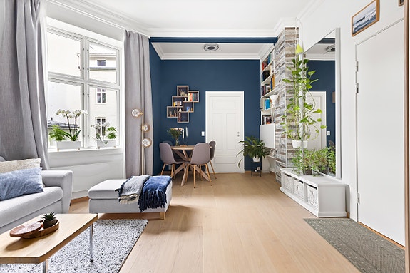 Klassisk og innbydende 2-roms m/​god planløsning og generøs takhøyde. Bel. mot rolig bakgård. V.vann og internett inkl.