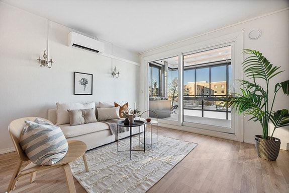Flott 3-roms leilighet i 2.etg med fin utsikt utover Herdlefjorden og helt ny vinterhage fra 2025. Gode solforhold!