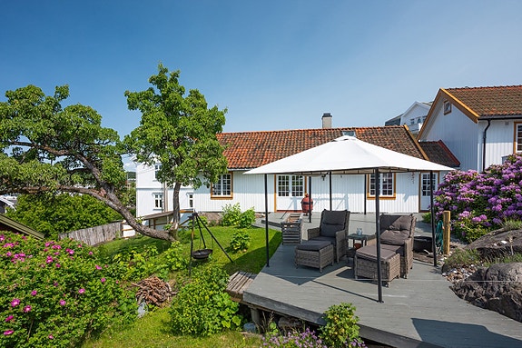 Dette er et hjem med sjel, plass til hele familien og privat bruksrett til strand, brygge og båtplass.