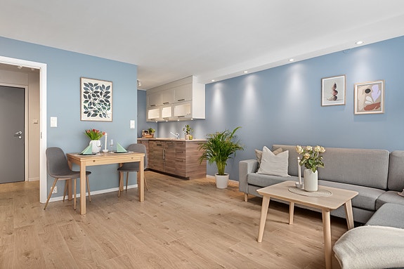 Fin 2-roms leilighet med sentral beliggenhet- Fast garasjeplass m/lader- Kort vei til butikk, buss og studiesteder.