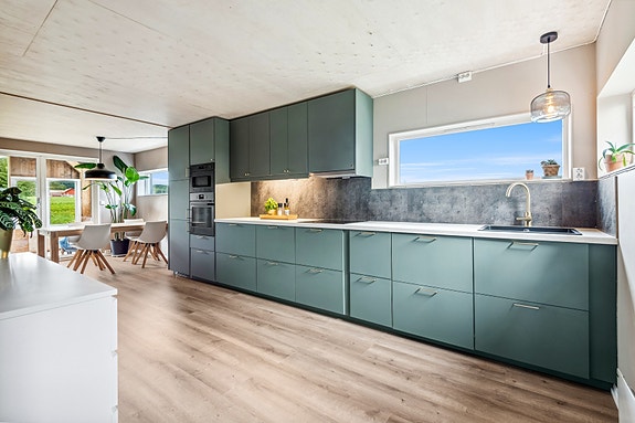 Velkommen til Logtunvegen 69! Enebolig oppgradert de senere årene både utvendig og innvendig. Nytt og moderne kjøkken fra 2023. Foto: EFKT (Hamish Grey)