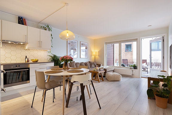 Dette er en lys og lekker 3-roms med en meget solrik og samtidig skjermet beliggenhet i et veletablert borettslag på Løren.