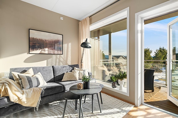 Stilfull 2-roms med sørvendt balkong, gode solforhold og naturskjønn utsikt. Parkeringskjeller med elbillader og heis