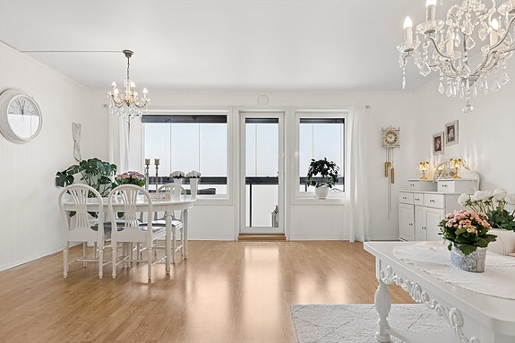 Ditt nye hjem ligger i byggets 2. etasje med utgang til en innglasset og trivelig balkong på ca. 8 m². Planløsningen oppleves som god med entré, møbleringsvennlig stueavdeling, adskilt kjøkken, flislagt baderom pusset opp i regi av borettslaget i 2016, og to gode soverom med fine innredningsmuligheter. Lagringsmulighetene er gode med én innvendig bod og to eksterne boder på henholdsvis 1,5 og 3 m².