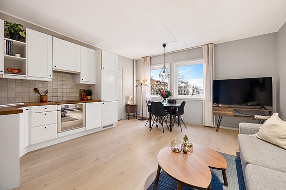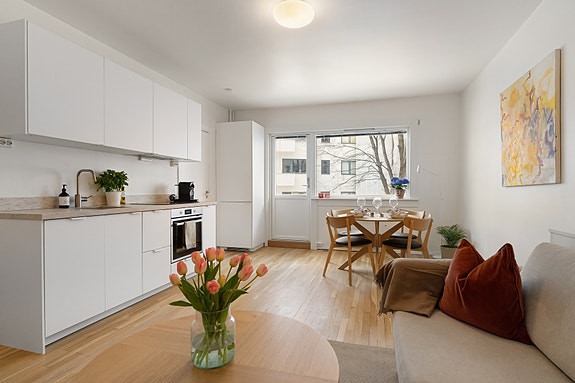 Velkommen til en lys og trivelig 1-roms pusset opp i 2019. Utgang ut til brannbalkong