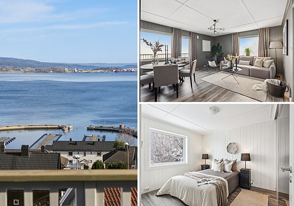 Koselig 3 roms leilighet i 2 etg. med flott sjøutsikt og gangavstand til byens sentrum med togstasjon og badestrand