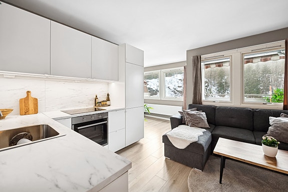Dette er en lys og praktisk andelsleilighet som ligger fint til i byggets 7.etasje med fin utsikt over grøntarealer og nabolaget. Her bor du komfortabelt i et etablert boligområde med busstopp like ved, som har hyppige avganger til sentrum med alt av servicetilbud samt togstasjon. Det er også flotte turmuligheter rett i nærheten. I tillegg er det gangavstand til dagligvare, gode servicetilbud og fritidsaktiviteter.