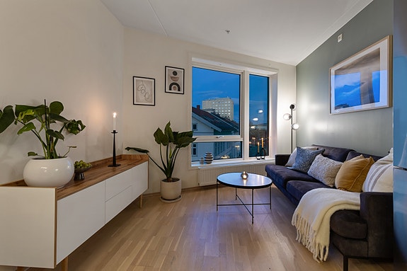 Leiligheten i byggets 2. etg. har en smart og meget arealeffektiv planløsning med BRA-i på 42 kvm og gjennomført god kvalitet i materialvalgene.