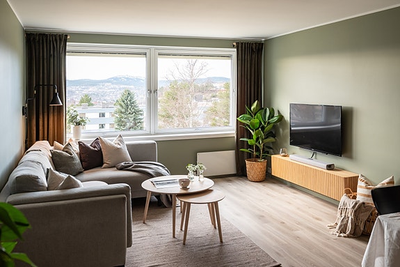 Utsøkt 4-romsleilighet med skjermet plassering i feltet og glimrende sol- og utsiktsforhold. Leiligheten har vært gjenstand for omfattende rehablitering de siste årene og holder en gjennomgående lekker standard med smakfulle fargevalg. Borettslaget er også rehabilitert i senere år med nye vinduer, ytterdører og oppgradert fasade. Blant kvaliteter fremheves følgende: