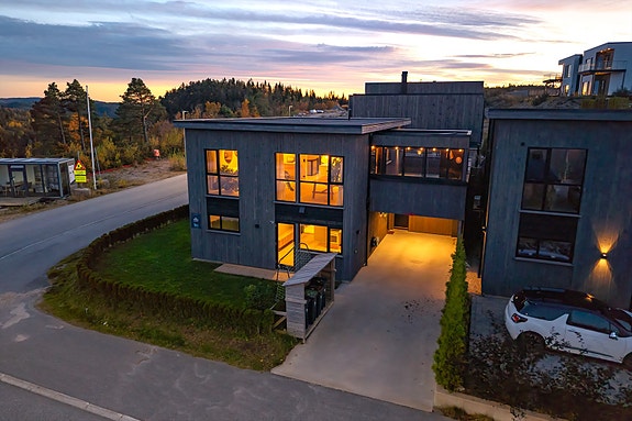 Smååsane | Lekker enebolig m/ny utleiedel | Solrikt terrasseanlegg m/basseng, utestue og utsikt | Carport m/lader