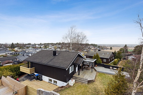 Høytliggende familiebolig i barnevennlig område | 4 soverom | 2 bad | Flotte uteplasser