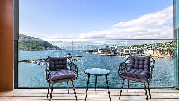 Eksklusiv leilighet på bryggekanten i Tromsø med spektakulær sjøutsikt, 150 kvm privat terrasse og 2 garasjeplasser