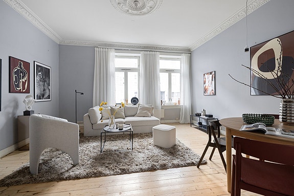 Velkommen til Odins gate 16 - Klassisk og gjennomgående leilighet i et meget ettertraktet boligområde på Frogner. Klassisk utsmykket med stukkatur og rosett. Gjennomgående med store vindusflater og en sjenerøs takhøyde på 3 meter i stuen som skaper en meget luftig og elegant leilighet.