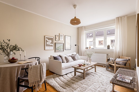 Leiligheten ligger i et ettertraktet og trivelig nabolag, kun en kort spasertur fra byens pulserende sentrum med alt av butikker, kafeer og offentlig transport rett i nærheten. Boligen er lys, romslig og har nøye gjennomtenkte farge- og materialvalg som skaper en moderne og innbydende atmosfære.