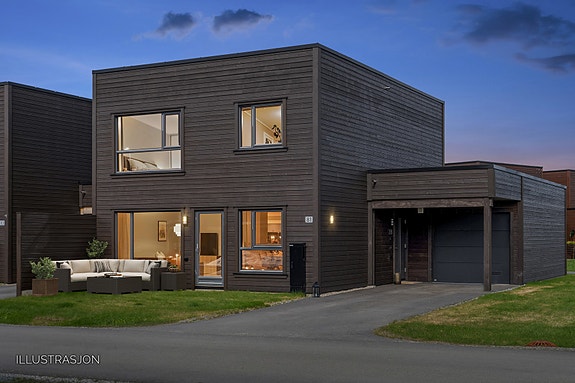 Dette er en moderne tomannsbolig fra 2022, over to plan med god intern plassering på hele 156 kvm. Boligen omkranses av fine utearealer på tre sider, med asfaltert gårdsplass foran integrert garasje med opplegg for elbil-lader, samt carport og en solrik hage utenfor stuen.