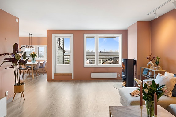 Leiligheten har romslig planløsning, og en sosial, delvis åpen løsning mellom stue og kjøkken. Badet ble rehabilitert i 2016. Kjøkkenet har de fleste hvitevarer integrert, nytt gulv og waterguard i 2022. I boligen er det 3 gode soverom og en flislagt entré med gulvvarme. Det er mulighet for skyvedørsgarderobe i entreen, rikelig med skap på soverommet og lagringsplass i ekstern bod.