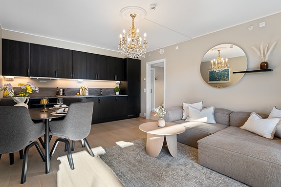 Lekker påkostet 3-roms fra 2023 | Moderne standard og solrik terrasse | Padelbane, restaurant, bademulighet mm i sameiet