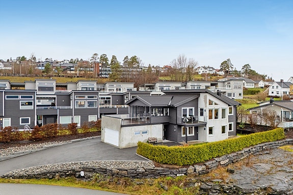 Unik og sjelden enebolig m/​utsikt over Steinsfjorden! Solrik hage, dbl. garasje m/​innredet loft og båtplass ved fjorden!