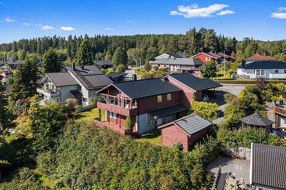 Overlege Bratts veg 27 - En flott og velholdt enebolig beliggende i markagrensa i Nilsbyen. Boligen har en gjennomgående pen standard, med godkjent utleiedel, en solrik tomt på rett over 1 mål og en fantastisk utsikt.