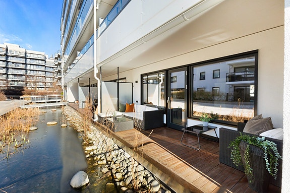 Moderne 3-roms på Ensjø | Terrasse & balkong | Oppvarming & varmtvann inkl | Garasjeplass m/lader
