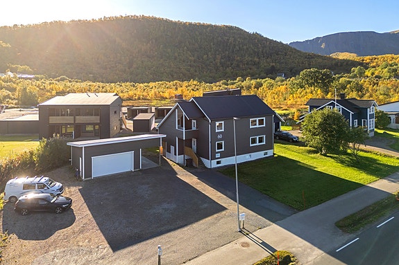Velkommen til Nordnesveien 60! Her får du en flott hel tomannsbolig, beliggende kun ca. 1 km fra Stokmarknes sentrum. Eiendommen har en rolig og familievennlig beliggenhet med kort vei til skoler, barnehager og byens fasiliteter.