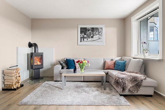 Lys & gjennomgående 3-roms oppusset i 2016 - GARASJE - Balkong på 7m² - Vedovn - 3 boder - Kort vei til Buss og T-bane!