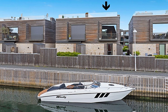 Boligen har moderne løsninger, solide materialvalg og er beliggende bokstavelig talt i vannkanten. Stue/kjøkken-løsningen har utsikt rett til bryggekanten, og kombinert med muligheten til å åpne hele vinduet i 2. etasje, gjør at du føler du er ute, også når du er inne. Slik vil 92 m², med 2 bad og 2 soverom føles enda større.
