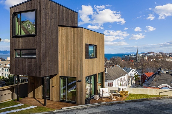 Frittliggende funkisbolig med eksklusivt uttrykk over tre plan og herlig beliggenhet på Steinberget!