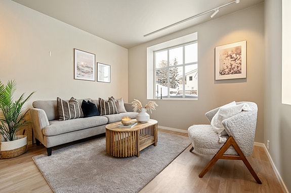 Leiligheten inneholder stue/kjøkken, gang, bad, 2 soverom og en bod.