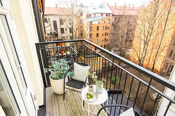 - Hyggelig, nordvestvendt balkong på ca. 3 kvm som vender mot rolig bakgård