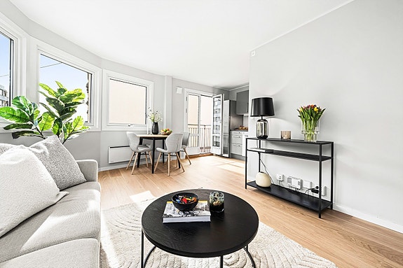 Nordvik v/Anders Thorkildsen og Mathias Solheim Ørnes har gleden av å presentere en nyoppusset og lekker 3-roms leilighet med en sentral og attraktiv beliggenhet på Grünerløkka. Leiligheten ligger i byggets 3. etasje med heis og utgang til luftebalkong. Leiligheten fremstår som lys og luftig med gode lysforhold og som skaper en god atmosfære. Leiligheten har en god og effektiv planløsning med to gode soverom, bad med opplegg for vaskemaskin/tørketrommel samt åpen stue-/kjøkkenløsning.