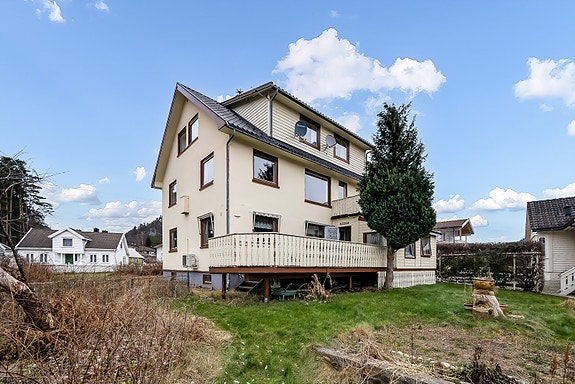 Vi har en halvpart av en tomannsbolig for salg. Denne del som skal selges ligger i andre etasje og loft og er innredet som leilighet med hybel. Denne halvparten selges som en boenhet. Bygningen er fra 1950 og fikk nytt tak og vinduer i 1990 Samtidig så ble det satt på en kvist og hybelen ble innredet. Røropplegg og elektrisk anlegg er oppgradert.