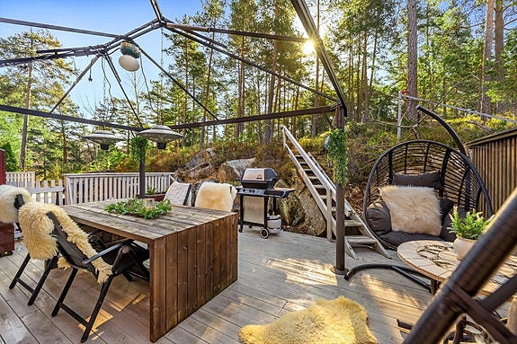 Velkommen til Jordstjerneveien 105! Rekkehuset fra 2007 går over tre plan og har en privat og god intern beliggenhet. Boligens 1. etasje har utgang til en stor sydvendt terrasse med solrik og usjenert beliggenhet mot skogen.