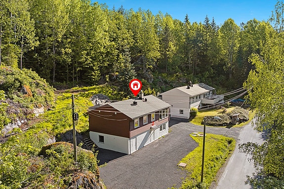 Huset er oppført i 1972 og har en planløsning over 2 etasjer. Inneholder blant annet vindfang, gang, kjellerstue, hobbyrom, 3 soverom, bad, wc, vaskerom, stue-/spisestue og kjøkken. Terrasse og integrert garasje.