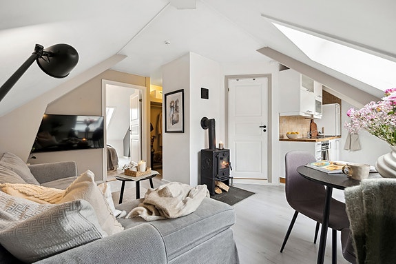 - Innbydende stue- og kjøkkenrom med vedovn