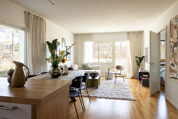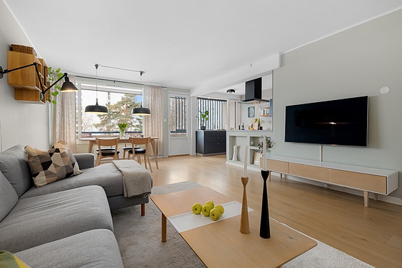 Velkommen til Folke Bernadottes vei 6 - hjørneleilighet med solrik balkong og Nordmarka som nærmeste nabo.