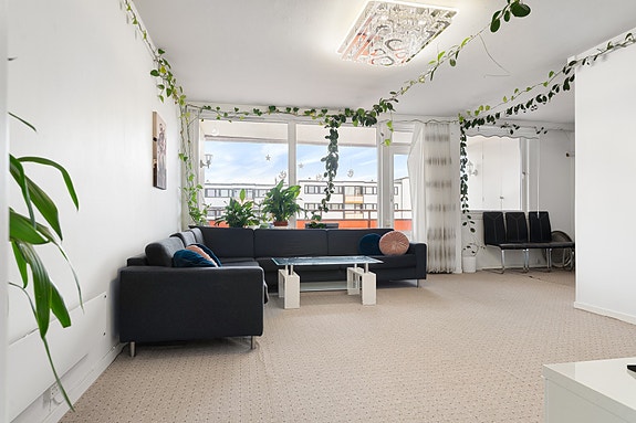 - Praktisk planløsning som gjør det enkelt å møblere med plass til spisesone, sofakrok og sittegruppe.