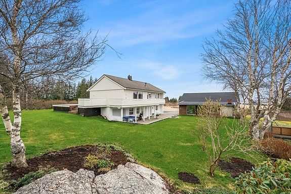 Flott og innholdsrik enebolig med nyere kjøkken og bad. Lys og åpen stue- og kjøkkenløsning oppusset i 2018. Kjøkkenet har integrerte hvitevarer: Stort kjøleskap, oppvaskmaskin (2024), 2 stekeovner, platetopp og avtrekksvifte i taket. Alle vinduer og dører i boligen er av nyere dato. Stua har skyvedører med utgang til terrasse og hage. 3 soverom, kontor og kjellerstue/hall. Dobbelgarasje. Ladestasjon for el-bil på husveggen. Fin hagestue ved garasjen og fint opparbeidet uteområde. Gårdsplass/innkjøring har belegningsstein og asfalt. Godt med lagerplass i bolig og garasjer.