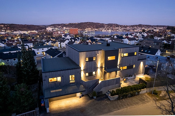 Rålekker moderne villa med panoramautsikt over Sandefjord by og Indre Havn! Særdeles solrikt. Stor garasje!