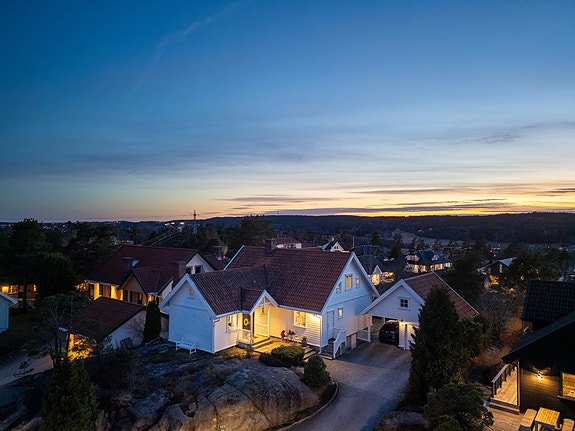 Beliggende på en solrik høyde på Ambjørnrød, finner du denne imponerende eneboligen, oppført i 2000. Med sine tre etasjer, garasje/carport, tilbyr denne boligen rikelig med plass for både familie og gjester.