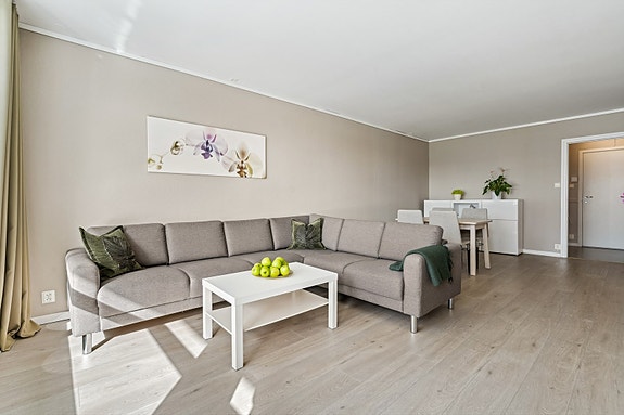Pen 2-roms leilighet i et rolig område på Tertnes. Leiligheten ligger i byggets 3. etasje og har en solrik sørvestvendt balkong på 16,8 m², perfekt for avslapning og hyggelige stunder. Til tross for beliggenheten i 3. etasje, er det kun en halvtrapp opp fra hovedinngangen noe som gir enkel adkomst, også når du skal bære inn dagligvarer. I tillegg er det en parkeringsplass i lukket garasjeanlegg i underetasjen. Beliggenheten gir deg praktisk tilgang til butikk, bussforbindelser og flotte turområder. Med bare noen minutters kjøretur til Horisont, IKEA og Åsane Storsenter, og kun 16 minutter til Bergen sentrum, her har du det meste du trenger innen kort avstand. Leiligheten er ideell for både unge og eldre som ønsker en praktisk og komfortabel hverdag.