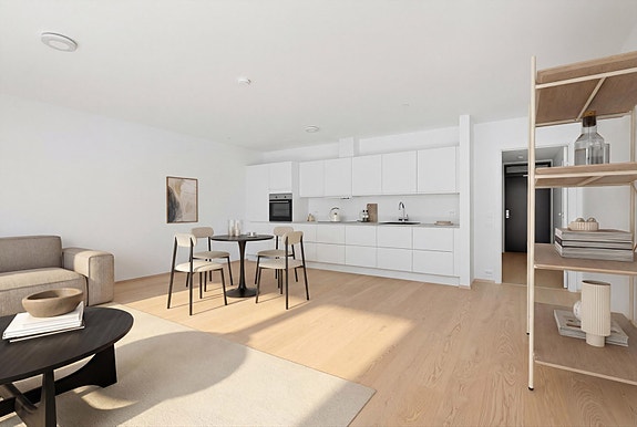 Kvadratmeterpris tilsvarer prisantydning pluss fellesgjeld per kvadratmeter (p-rom eller BRA-i). Prisene i grafen er avrundet til nærmeste 1000 kr.
