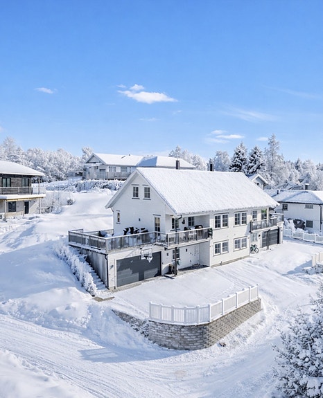 Halvpart tomannsbolig.5 sov.3 stuer.2 bad.Dobbel garasje.Utsikt.Familievennlig.Gåavstand til skoler, barnehage, tog m.m.