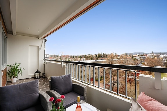 Pen 2-roms leilighet beliggende høyt og fritt til i 5. etasje |10 kvm solrik balkong med utsikt|Heis|Nærhet til T-bane