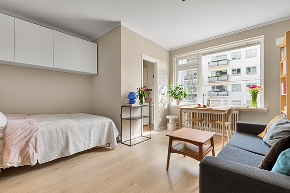 Sander Flåte v/Nordvik Eiendomsmegling har gleden av å presentere Kirkeveien 50. Leiligheten har en meget effektiv planløsning med kjøkken, stue og bad. I stuen er det flere gode møbleringsmuligheter, og de store vindusflatene fra 2012 slipper inn rikelig med naturlig lys. Dette er en perfekt leilighet for deg som vil inn på boligmarkedet, eller har behov for en pendlerleilighet med sentral beliggenhet.