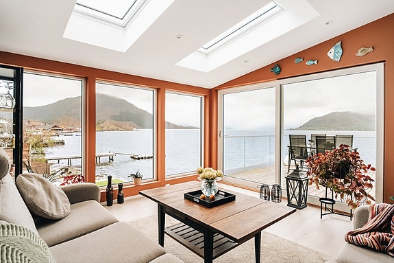 Drømmebolig i sjøkanten med strand, kai, naust og eventyrlig utsikt! Få minutter kjøring til idylliske Rosendal sentrum.