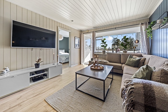NY PRIS! Meget innbydende og pen leilighet i 1. etg med solrik innglasset balkong - Bad fra 2014 - 2 sov - Peis fra 2023