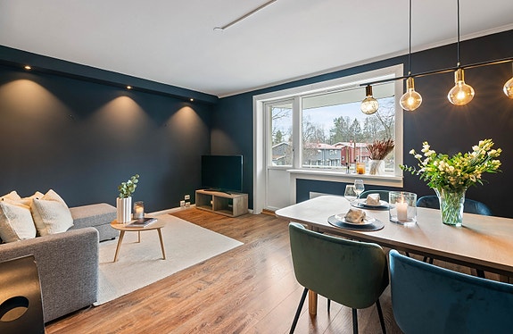 Lys og moderne 2-roms hjørneleilighet med solrik balkong mot sydvest | Nytt bad 2024 | Peis |Stille og rolig beliggenhet