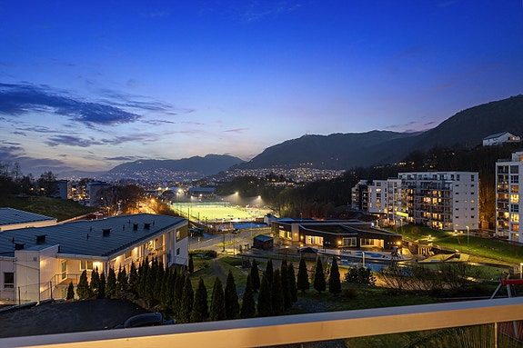Lekker oppgradert leilighet med nydelig utsikt | 3 soverom | Stor terrasse | Garasje m/lader | Bybanen like ved | Heis