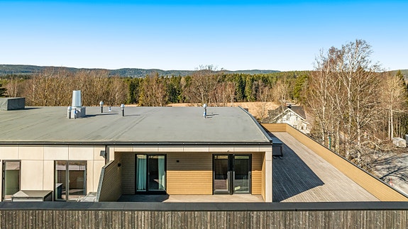 Stor takterrasse på 164 kvm BRA med flott utsikt og gode solforhold
